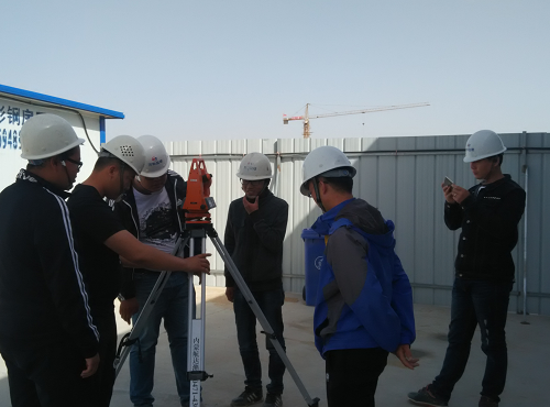 趙少華組織監(jiān)理員進(jìn)行經(jīng)緯儀、全站儀學(xué)習(xí)(左三)