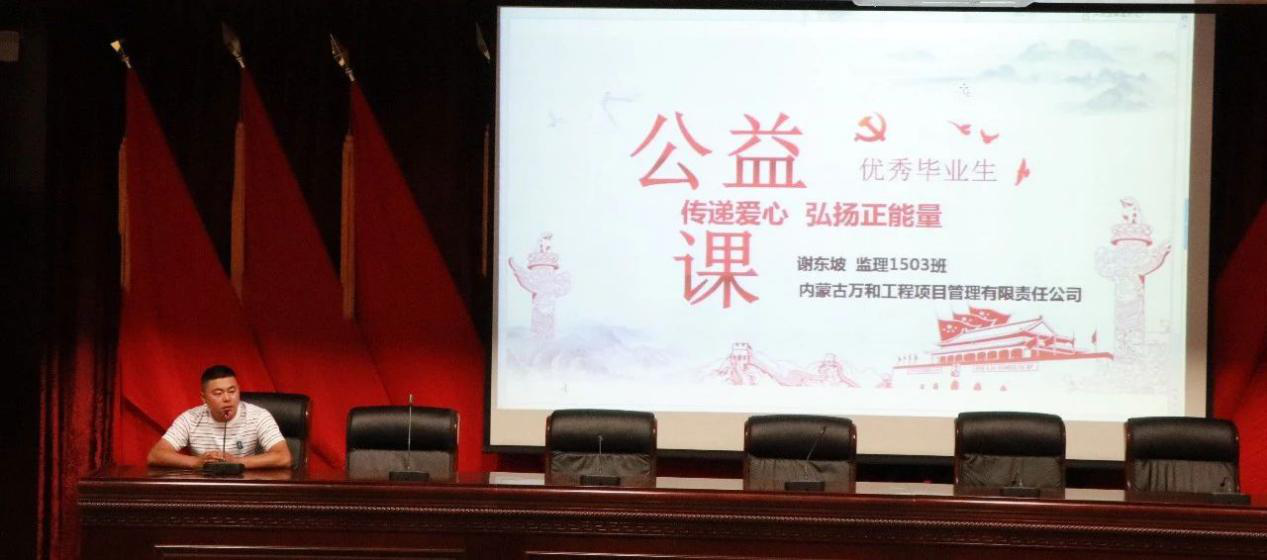 2019年6月,謝東坡受內(nèi)蒙古建筑職業(yè)技術(shù)學(xué)院工程管理學(xué)院邀請(qǐng)回校開展《傳遞愛心,弘揚(yáng)正能量》公益講座,通過:制定明確目標(biāo)、合理規(guī)劃時(shí)間、獨(dú)立思考、團(tuán)隊(duì)協(xié)作、積極主動(dòng)勇敢創(chuàng)新、服務(wù)社會(huì)等方面與同學(xué)們積極分享他所總結(jié)的大學(xué)生學(xué)生工作及社會(huì)工作經(jīng)驗(yàn)。作為一名中共預(yù)備黨員,他在座談中提到,堅(jiān)定正確的政治立場(chǎng),積極向黨組織靠攏,以正確的世界觀、人生觀、價(jià)值觀為指導(dǎo),堅(jiān)持中國(guó)共產(chǎn)黨的領(lǐng)導(dǎo),做到始終在思想上、行動(dòng)上與黨組織保持一致。