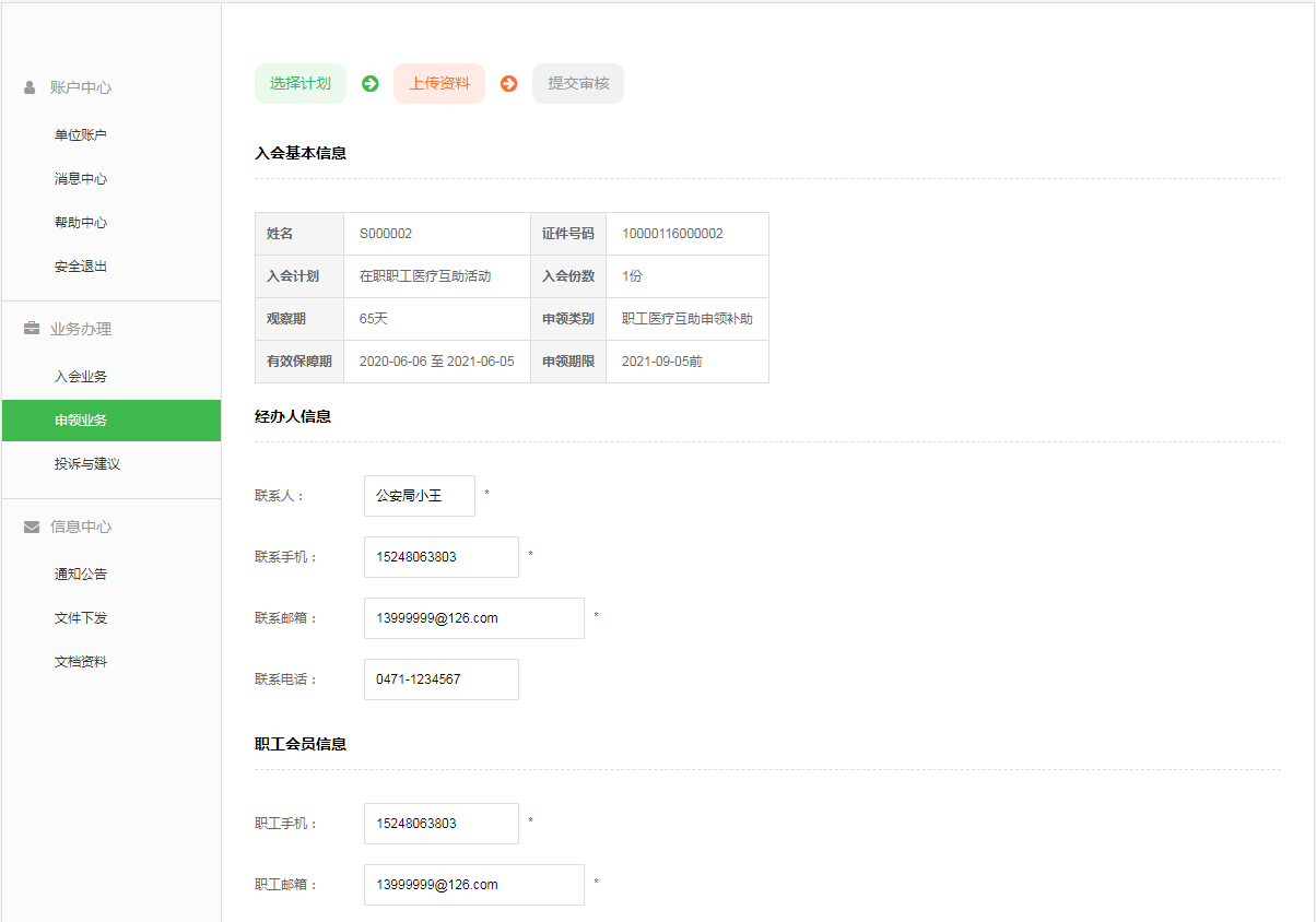 (三)填寫單位信息、醫(yī)院信息、申領(lǐng)資料信息、上傳醫(yī)保卡\銀行卡證件照(系統(tǒng)自動識別出銀行卡號、對應銀行名稱、行號)、上傳證明文件,點擊【提交審核】按鈕,進行審核。