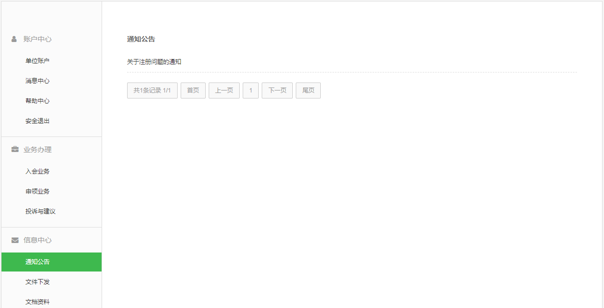 點擊左側(cè)導航欄的【通知公告】/【文件下發(fā)】/【文檔資料】進入通知公告/文件下發(fā)/文檔資料列表頁面,可顯示互助協(xié)會下發(fā)的文件通知,點擊其中一條信息可查看詳情,如下圖所示。