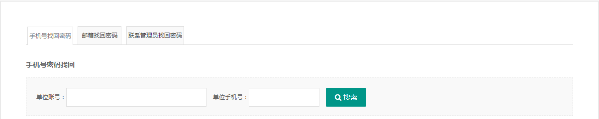 用戶登陸時,如忘記密碼,可點擊登錄頁面【忘記密碼】按鈕,進行密碼找回。系統(tǒng)提供兩種找回方式,以及管理員聯(lián)系方式(聯(lián)系管理員找回),如下圖。
