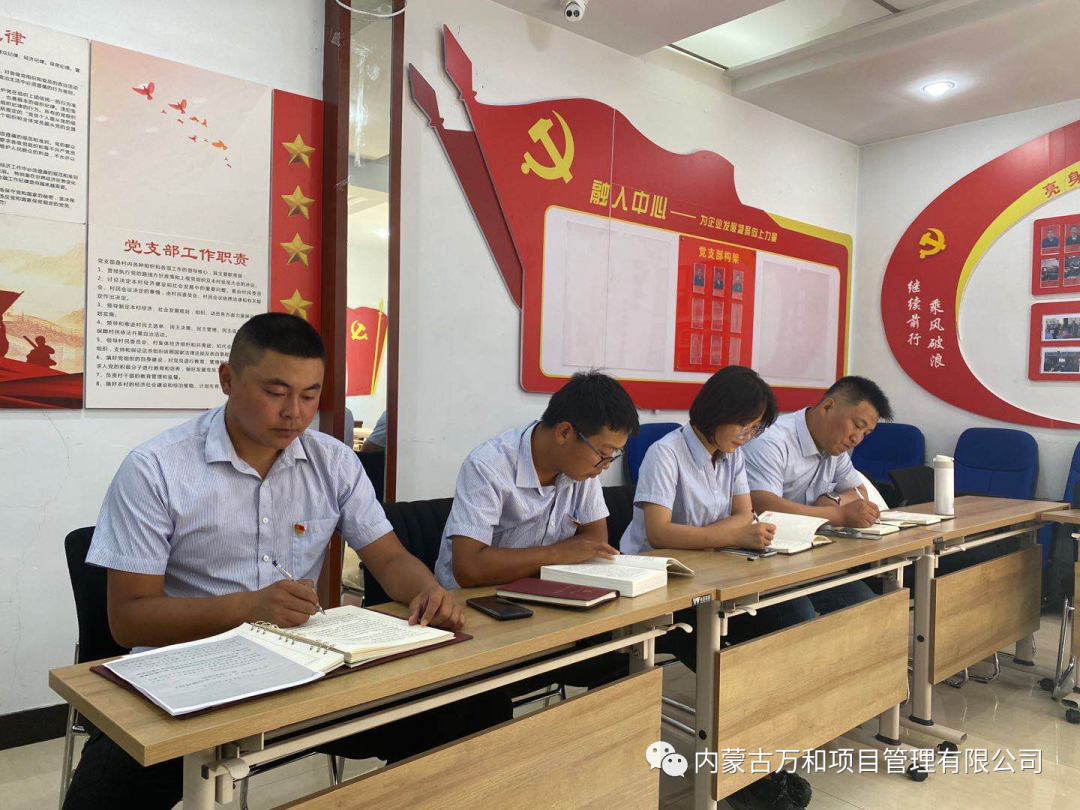 最后,由支部書記王濤同志作總結(jié)發(fā)言。王書記指出,我們要經(jīng)常組織專題學(xué)習(xí),大家要保證人手一冊原著,會后還要繼續(xù)通過學(xué)習(xí)原文,學(xué)習(xí)強(qiáng)國以及草原云等平臺系統(tǒng)學(xué)習(xí),同時與學(xué)習(xí)貫徹習(xí)近平總書記對內(nèi)蒙古的重要講話、重要批示精神緊密結(jié)合起來,同貫徹學(xué)習(xí)“兩會”精神緊密結(jié)合起來,進(jìn)一步夯實(shí)萬和項(xiàng)管公司全體黨員與以習(xí)近平同志為核心的黨中央保持高度一致的思想根基。