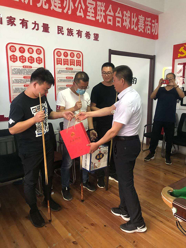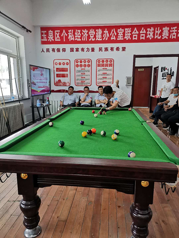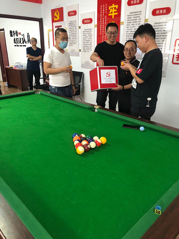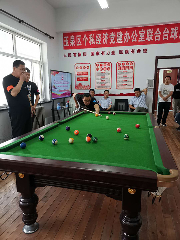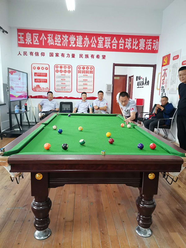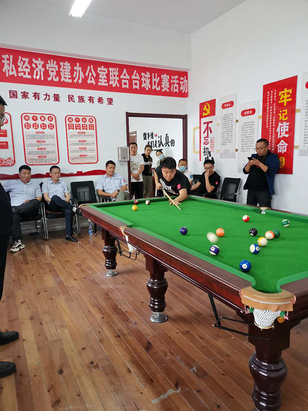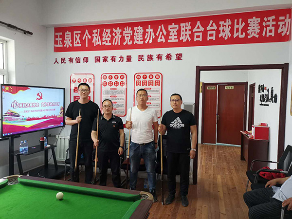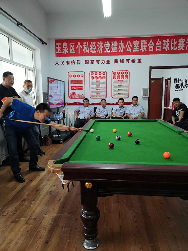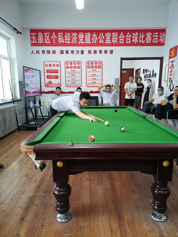 為響應(yīng)上級黨委組織的號召,增強(qiáng)黨組織的創(chuàng)新力、凝聚力和戰(zhàn)斗力,增進(jìn)黨員群眾感情,豐富員工文化生活,提倡“陽光生活,快樂工作”理念。2020年5月15日,玉泉區(qū)個私經(jīng)濟(jì)組織黨建辦公室以“心系群眾跟黨走,文體活動月月有”為主題,組織個私企業(yè)黨支部、企業(yè)積極分子在呼和浩特市蒙谷香生物科技有限公司黨建活動中心開展了臺球聯(lián)誼比賽活動。